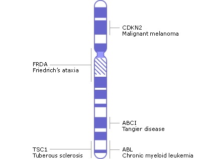 - See the diseases associated with chromosome 9 in the below image