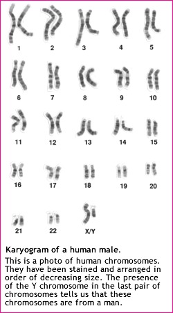 Our genetic information is stored in 23 pairs of chromosomes that vary widely in size and shape. Chromosome 1 is the largest and is over three times bigger than chromosome 22. The 23rd pair of chromosomes are two special chromosomes, X and Y, that determine our sex. Females have a pair of X chromosomes (46, XX), whereas males have one X and one Y chromosomes (46, XY). Chromosomes are made of DNA, and genes are special units of chromosomal DNA. Each chromosome is a very long molecule, so it needs to be wrapped tightly around proteins for efficient packaging.